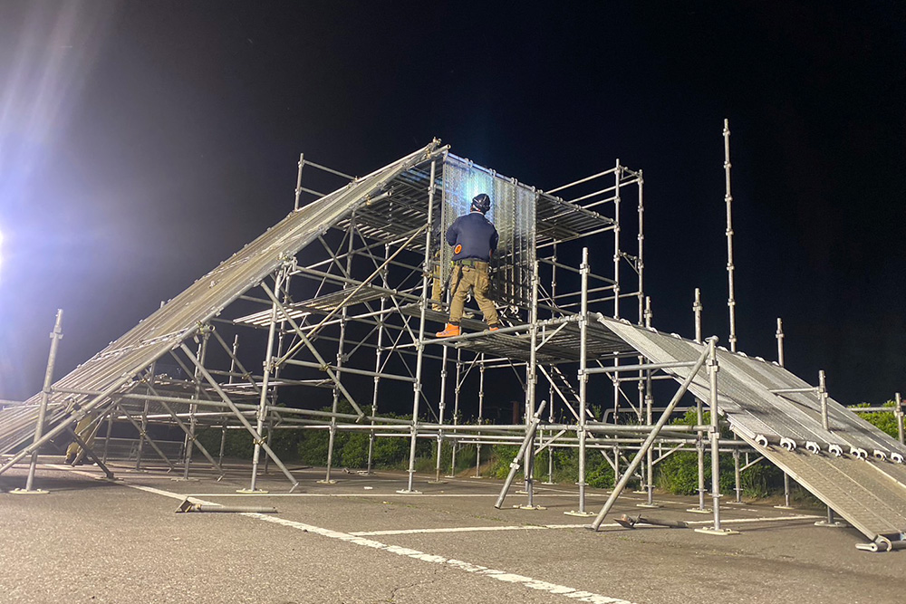 鶴一(かくいち)は、 これまでさまざまな建設業を経験してきた代表がいるため、工事内容にあった足場の組立てが可能です。